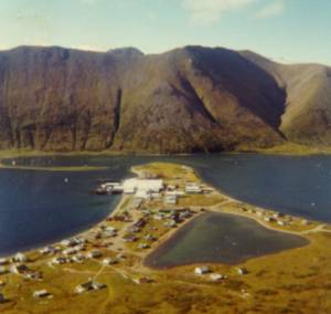 ![]() Caption 10 King Cove. Ocean on the left, lagoon on the right, lake in the foreground, Peter Pan Cannery |