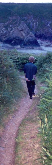 ![]() Arlene Currier following the foot path down to the shore near Glan-y-Mor Guest House at St. Davids, Wales |