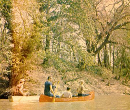 Coffee Break At The River's Edge The club recently had its first scheduled "close to home" trip (within 100 miles of Kansas City) on the Marais des Cygnes. Trip leader Howard O'Connor of Lawrence guided 12 canoes over the 9 mile stretch between Pamona and Ottawa. During the trip, steersmen guided canoes around fallen trees and protruding branches, over submerged rocks and hidden logs. Toddlers and teenagers played in the bottom of canoes or helped their parents paddle. Several stops along the way provided opportunities to explore animal paths, to identify deer and raccoon tracks and to look for Indian arrowheads, clam shells,and fossilized plants -- and to just sit down, lean back and enjoy a sunny afternoon away from it all. Later in the day when the sun climbed higher, one or two daring canoeists took a dip in the cold spring water. Several boys rescued an injured redheaded woodpecker from the river and climbed a sandstone bluff to get a better view of the Marais des Cygnes. But all too soon, the river carried the canoeists homeward. By 4 p.m., the canoes pulled into the "take-out" and 30 tired canoeists rapidly packed up and drove away amid hurried "good-bye's" and "see you soons" - temporarily satisfied until another weekend and another canoe trip. And in their wake, the maple seeds pirouetted in the late afternoon breeze and the rushing wind blew above the languid river.