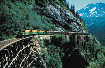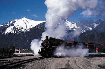 the White Pass Railroad shuttles adventurers from the terminus of Alaska’s Marine
