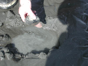 Don said he learned a new technique that day of taking little scoops of sand at a time until the neck of the clam was visible - the plunging his hand in the sand and feeling around for the clam. Some of them pulled pretty hard trying to stay in the sand. The main clam found on this beech is razor clams 4" to 6" although some get as big as 8". Limit was 45 clams per day. Also picked up were butter clams, little neck clams and cockles. It is a big beech and there may have been 200 people out that day. The parking area had about 100 cars. |