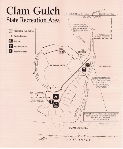 on Clam Gulch Road from the Sterling Highway to the intersection of the campground
