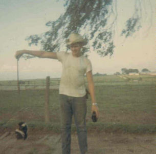 Don Eubank with two of the five skunks he caught. June 20, 1966