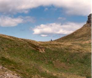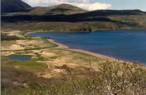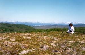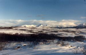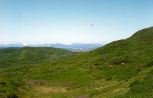 ![]() Sand Point school in background - cut trail blazing by Battle Mountain Gold Co. in area south of airport. |