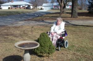 <---Adelaide D. Eubank at 6113 Lane, Raytown, Missouri inspecting the yard before Mauri & Mike Millan carrive from Austin, Texas. |