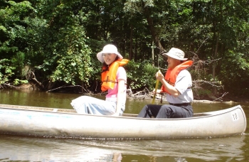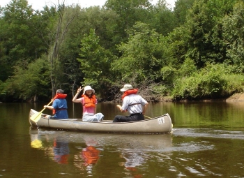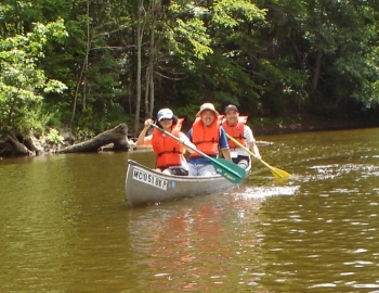During June and July of 2006 the Visiting International Professional Program of Michigan State University held a seminar for 21 Physics Teachers from Korea. At the beginning of the session, we went canoeing on the Grand River at Burchfield Park in Holt, Michigan. We paddled up river for about 2 hours and then floated back down to the take out point. A great time was had by all. More pictures from the time at Burchfield Park, Holt, MI From Wikipedia The Grand River is the longest river in the U.S. state of Michigan. It runs 260 miles (420 km) through the cities of Jackson, Lansing, Grand Rapids, and Grand Haven before reaching Lake Michigan. Its watershed drains an area of 5,572 mile² (14,431 km²). The Grand River carries an average 3,800 ft³/s (108 m³/s). It has several dams along its length but is a trout and salmon stream for much of its length. It is estimated that 22% of the pesticide usage in the Lake Michigan watershed occurs in the Grand River drainage which accounts for only 13% of the total watershed. Much of the basin is flat and it contains many swamps and lakes; although, there is an elevation difference of 700 feet (213 m) between the source and mouth of the river. Tributaries are the Red Cedar River, Looking Glass River, Maple River, Flat River, Thornapple River, and the Rogue River.