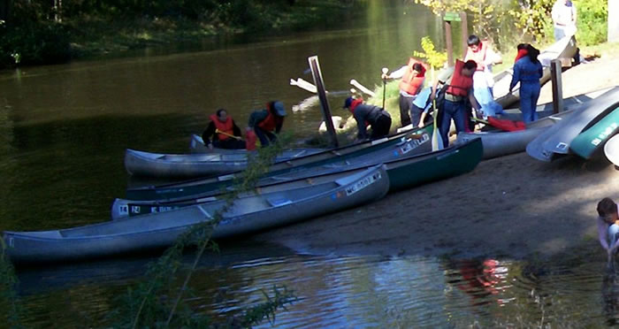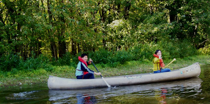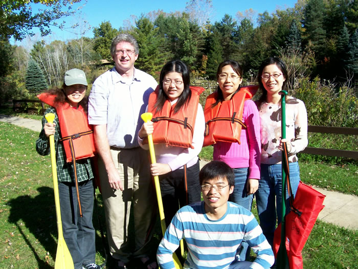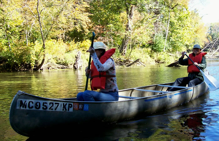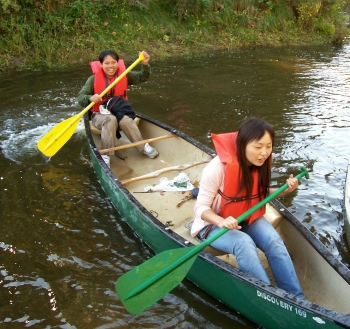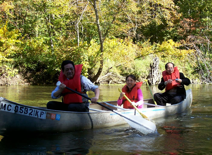 During Octoberof 2006 the Visiting International Professional Program of Michigan State University held a seminar for 24 Journalist from the Ningbo News Group. Half way through the session, we went canoeing on the Grand River at Burchfield Park in Holt, Michigan. We paddled up river for about 2 hours and then floated back down to the take out point. A great time was had by all! From Wikipedia The Grand River is the longest river in the U.S. state of Michigan. It runs 260 miles (420 km) through the cities of Jackson, Lansing, Grand Rapids, and Grand Haven before reaching Lake Michigan. Its watershed drains an area of 5,572 mile² (14,431 km²). The Grand River carries an average 3,800 ft³/s (108 m³/s). It has several dams along its length but is a trout and salmon stream for much of its length. It is estimated that 22% of the pesticide usage in the Lake Michigan watershed occurs in the Grand River drainage which accounts for only 13% of the total watershed. Much of the basin is flat and it contains many swamps and lakes; although, there is an elevation difference of 700 feet (213 m) between the source and mouth of the river. Tributaries are the Red Cedar River, Looking Glass River, Maple River, Flat River, Thornapple River, and the Rogue River.