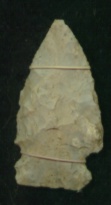 Arrowheads / scrapers / "bird points" / drills displayed were not necessarily found on the trip listed. I have tried to make them as close to the actual size as possible. They were found in plowed fields, washouts, along the river or creek bed, or in roads or trails. I did have a system of labeling them at the time - where a bit of masking tape was coded to match the 3" x 5" card listing the trip. Unfortunately, most of those labels have faded making it difficult to match up. |