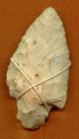 Arrowheads / scrapers / "bird points" / drills displayed were not necessarily found on the trip listed. I have tried to make them as close to the actual size as possible. They were found in plowed fields, washouts, along the river or creek bed, or in roads or trails. I did have a system of labeling them at the time - where a bit of masking tape was coded to match the 3" x 5" card listing the trip. Unfortunately, most of those labels have faded making it difficult to match up. |