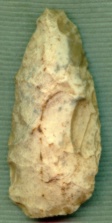Arrowheads / scrapers / "bird points" / drills displayed were not necessarily found on the trip listed. I have tried to make them as close to the actual size as possible. They were found in plowed fields, washouts, along the river or creek bed, or in roads or trails. I did have a system of labeling them at the time - where a bit of masking tape was coded to match the 3" x 5" card listing the trip. Unfortunately, most of those labels have faded making it difficult to match up. |