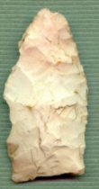 Arrowheads / scrapers / "bird points" / drills displayed were not necessarily found on the trip listed. I have tried to make them as close to the actual size as possible. They were found in plowed fields, washouts, along the river or creek bed, or in roads or trails. I did have a system of labeling them at the time - where a bit of masking tape was coded to match the 3" x 5" card listing the trip. Unfortunately, most of those labels have faded making it difficult to match up. |