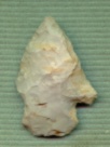 Arrowheads / scrapers / "bird points" / drills displayed were not necessarily found on the trip listed. I have tried to make them as close to the actual size as possible. They were found in plowed fields, washouts, along the river or creek bed, or in roads or trails. I did have a system of labeling them at the time - where a bit of masking tape was coded to match the 3" x 5" card listing the trip. Unfortunately, most of those labels have faded making it difficult to match up.