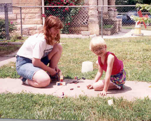 | Cousin Jessie and Michelle at age 8 playing blocks outside of Great Grandma Cathrine's house. | ![]() |