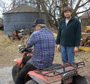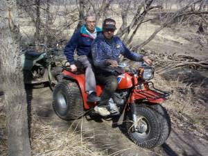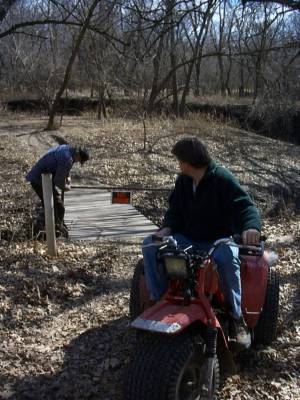 February 29, 2000 This is an uncommon day. This particular leap day only comes around once every 400 years. The weather was very mild for north-central Kansas - up in the 60° - also rare for this time of year. A good day to ride the trails along the Black Vermillion River on three wheelers. Randy Slifer, master mechanic, outfitter and guide takes some displaced Alaskans for a tour of the grounds. |