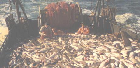 Deck loads of cod fish.