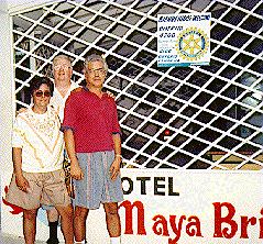 The Playa Club members were not at the airport when we arrived. We visited with taxi drivers as best we could and waited for someone from the club to spot us in front of the airport. We did spend time practicing Spanish with the cab drivers and made friends with two drivers that helped us make a phone call to Playa. After about an hour, Nancy called the Hotel Maya Bric and was assured that Club members were on the way to pick us up. The President of the Playa Club, Luis Ricardo Gama and two other members arrived a short time later. Ricardo's wife and another wife was there to welcome us along with the members. They presented Nancy with flowers.