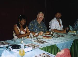 The first two days we taught as a team with all students in one class room. This was a way to introduce ourselves and to sort the students by ability. Classes were held from 9 a.m. to 11 a.m. and 6 p.m to 8 p.m. Later we divided the classes offering two beginning classes and two intermediate/advanced classes. Some students attended both the morning and evening classes. Students came as far as ten miles each day for classes. They walked and rode public transportation. Visiting them at their job site was very interesting for us and a real treat for them. Their English teacher cared enough to visit them at work! We were treated royally! This can be most interesting when your student is the head bartender!